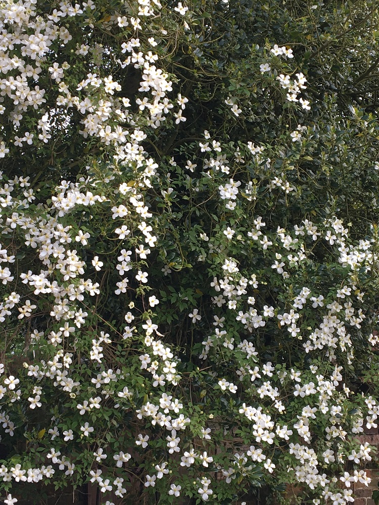 Back to Clematis – they are such versatile plants that we can all find space for at least one – whether its a C. montana taking over a holly tree (intentional, or otherwise), or more showy ones scrambling through the border (possibly not intentional either) or brightening up a fence.